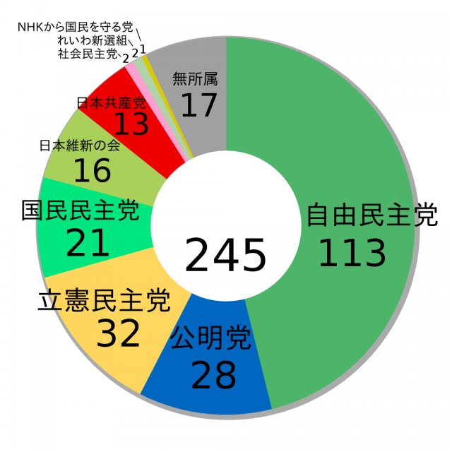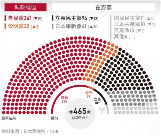 不过,2021年的众议院第49届总选举后,自民党、公民党、维新会分别获得261、32、41个席位,共334个席位,占众议院465个席位的71.8%。