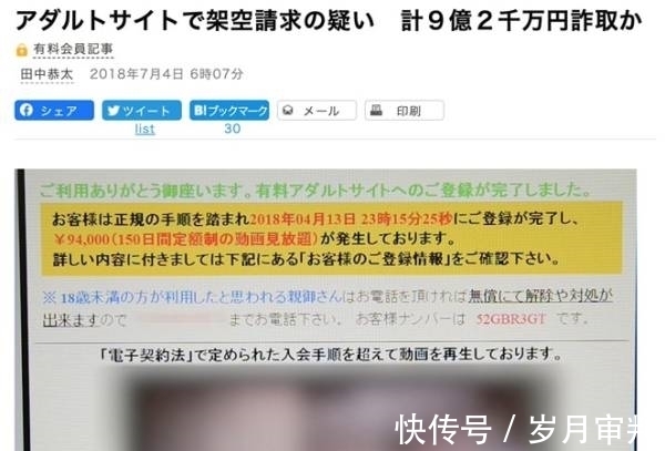 至于单个个人,京都新闻报道了一个例子——有一名78岁高龄的大爷被这种成人网站诈骗框住,给骗子打了435万日元(约25万元人民币)。想必大爷以后打开羞羞内容的时候都有极大的心理阴影了。